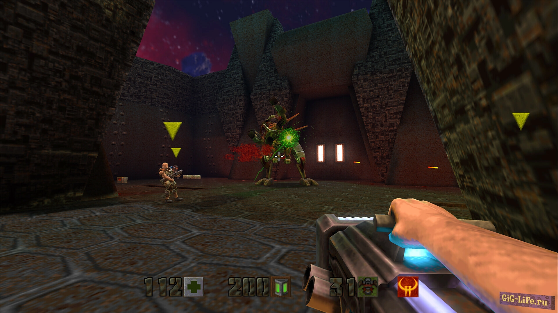 Quake II, это именно тот видеошутер, что с легкостью выплеснул на игровую арену в далеком 1997 году вихрь невиданных ранее переживаний от первого лица. Игра, которая не просто даровала игрокам порцию адреналина и развлечения, но и раскрыла перед ними совершенно новый мир фантастики, словно ворота в неизведанный космический континуум. Теперь у вас есть возможность вновь окунуться в это потрясающее путешествие, выбрав наиболее обновленную и полную ремастер версию оригинального творения от мастеров из id Software.
