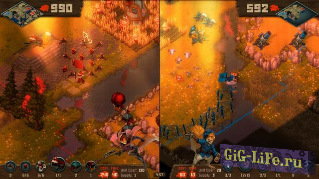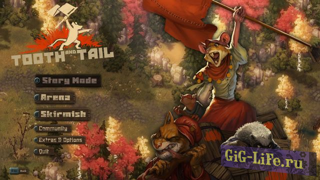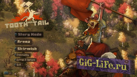 Tooth and Tail – стратегия в реальном времени, рассчитанная 1 на 1 или 2 на 2. Играть можно как по интернету, так и на одном компьютере. Игрок выбирает себе командующего, через которого и будет происходить управление войском. В среднем матч длится от 5 до 10 минут. Из особенностей: необычная пиксельная графика, главные герои в виде очеловеченных зверей (антропоморфы), простое управление и упор на тактические решения.
