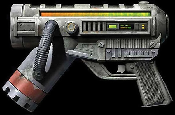 позволяет набрать несколько (до восьми) зарядов в ствол и выстрелить одновременно большим комом. Жидкость липнет к полу и стенам, и через некоторое время взрывается. Не тонет в воде. Хотя биоружьё едва ли можно назвать оружием в привычном смысле слова, оно чрезвычайно эффективно при игре в обороне. Полностью заряженное ружьё разносит на кусочки человека, даже имеющего максимально возможное количество здоровья и брони (в том числе, разрывает даже человека в силовом щите).