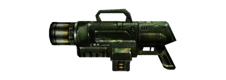 осколочной гранатой, летящей по параболе и взрывающейся при ударе с разбрасыванием тех самых осколков, но в меньшем количестве. Зачастую, прямое попадание гранатой гарантирует смерть как и в случае с ракетным попаданием, но силовой щит обычно спасает невнимательного "ловца" в обоих случаях. В остальном, это, пожалуй, самое эффективное оружие ближнего боя, требующее изящного обращения.