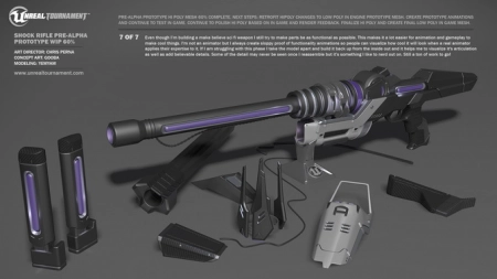 включает оптический прицел с переменным приближением. Выстрел в голову наносит почти втрое больше повреждений, чем попадание в тело (67 в тушку, 150 в голову), и для убийства достаточно одного меткого попадания (обычная броня бессильна, спасает только силовой щит). При таком убийстве голос комментатора торжествующе произносит «Headshot» или «Выстрел в голову!» Также существует мутатор Sniper Arena. Из за особенностей движка Unreal, профессионалы используют это оружие довольно часто, ведь попасть противнику в ногу в лестничном проёме - то же самое, что попасть в грудь на открытой местности.