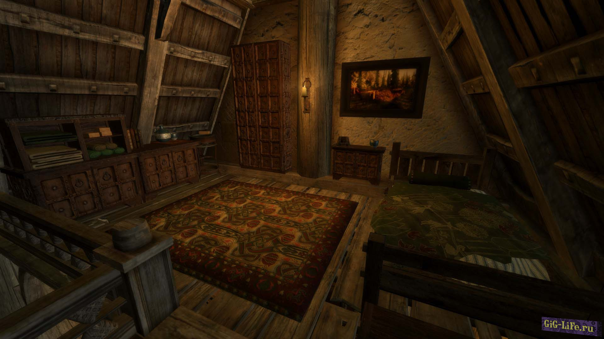 - Потайная комната - эта комната может быть создана в подвале на верстаке в категории "Разное". Активируйте картину рядом со святыней Богов, чтобы открыть потайную дверь. Существует восемь различных тем на выбор. Если вы решите, что вы хотите сменить стиль на предыдущий, активируйте "Книгу учета" рядом с входной дверью и в книге будет опция для сброса стиля. Обязательно уберите все предметы, которые вы разместили, храните в контейнерах в "Потайной комнате", перед сбросом стиля. Пожалуйста, имейте в виду, что вы не получите обратно любые материалы, которые Вы использовали для создания стиля.
