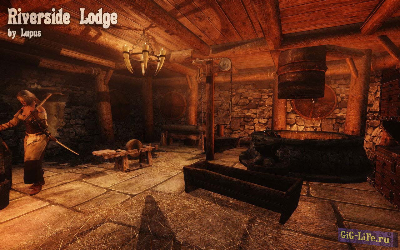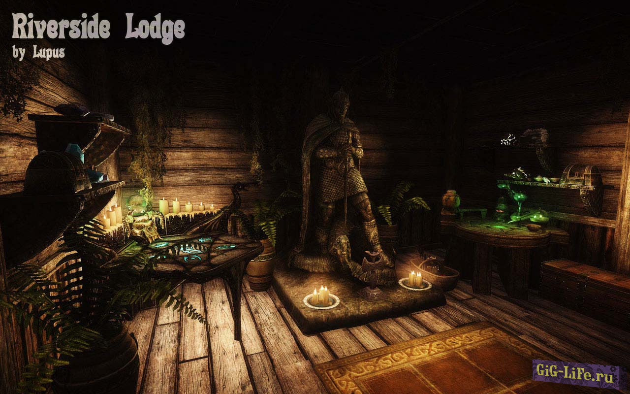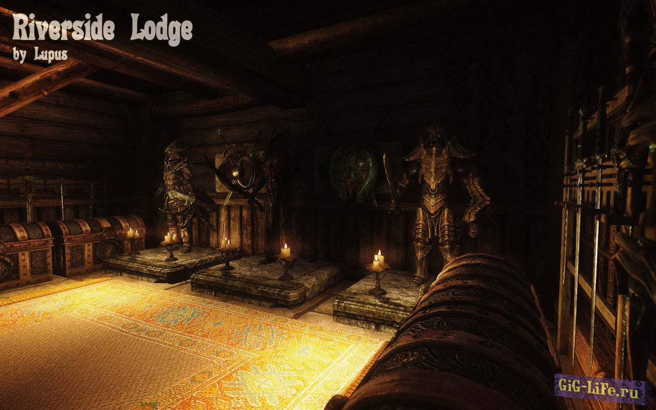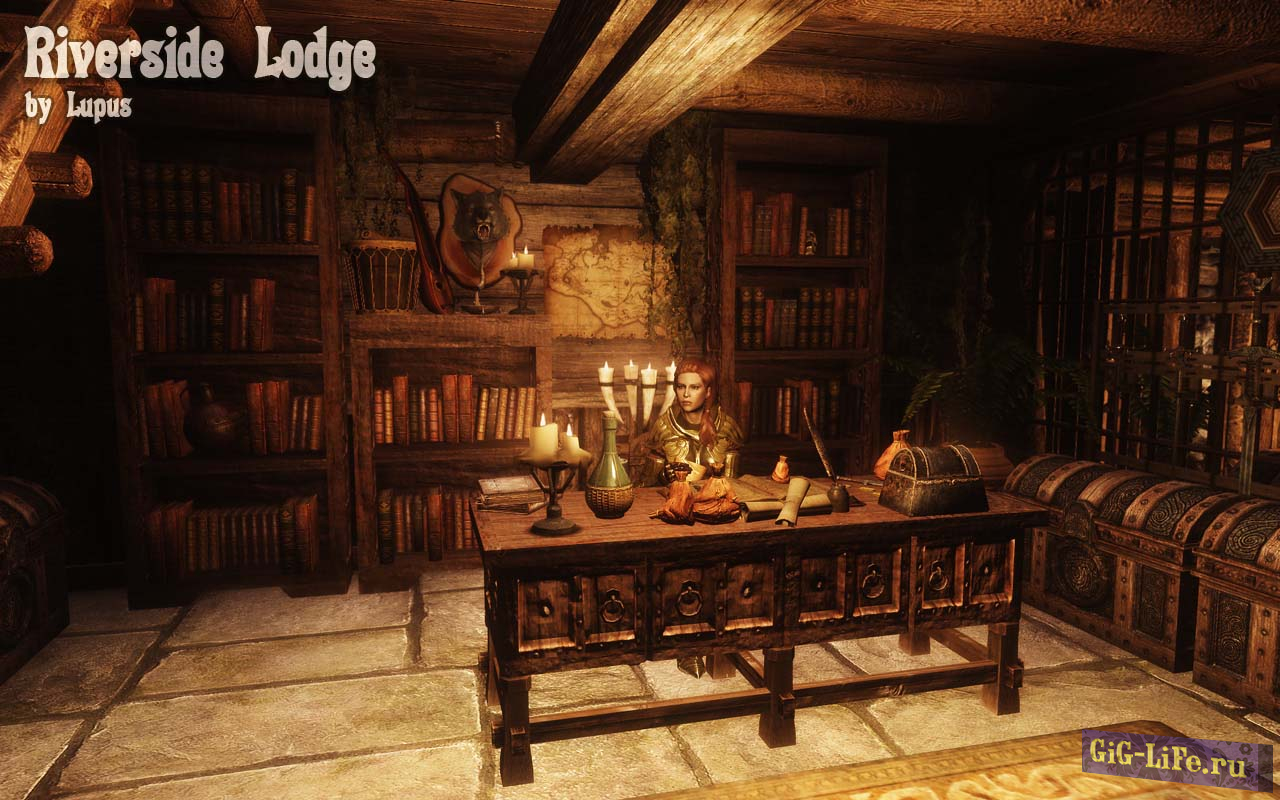 Данный мод добавляет на просторы Скайрима красивый, живописный и полностью оборудованный дом, усадьбу "Риверсайд" для игрока, который расположился между Вайтраном и Ривервудом. Усадьба станет прекрасным местом для процветающего авантюриста, который любит приключения. В главном здании находятся кухня и гостиная, на верхнем этаже и подвале, оружейная/комната для брони/оборудования для хранения. Вместительное боковое крыло включает в себя спальные помещения, библиотеку и лаборатории для зачарований/алхимии. Также имеется настоящая сауна (с гидро массажной ванной) и сад. Автоматический сортировщик сделает систему хранения продуктов и других предметов в контейнерах легкой и удобной. Активаторы могут также включаться и выключаться по отдельности, если вы не хотите использовать систему авто сортировки.
