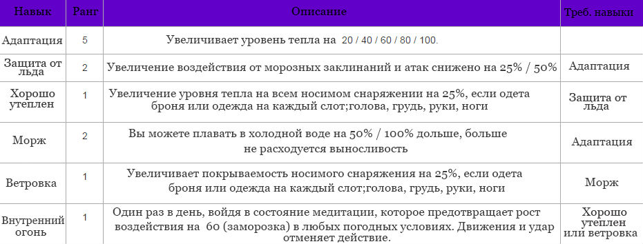 - Сопротивление морозу (Начиная игру за норда, вы имеете более высокий уровень Тепла, чем другие)