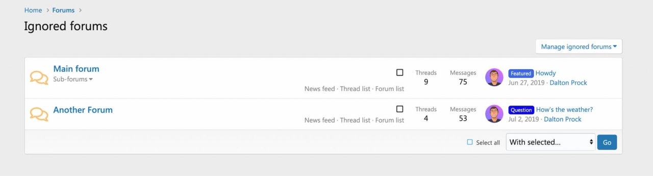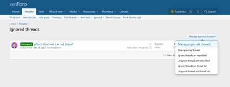 Предлагаемый плагин обеспечивает возможность пользователям добавлять интересующие их темы и форумы в список игнорируемых, что в результате приведет к тому, что эти элементы перестанут отображаться для них.