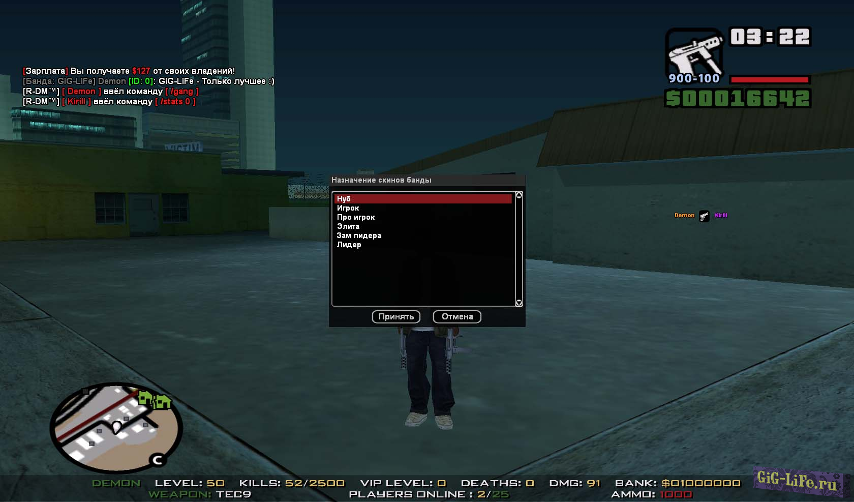 - Name player | Level | Kills | Deaths | Vip level | DMG | Bank money