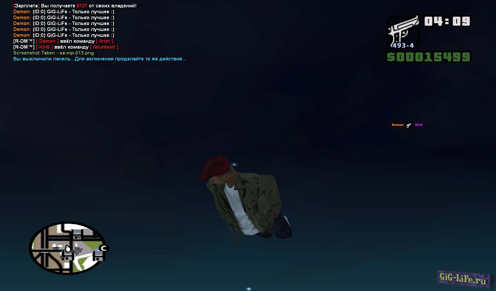 - Команда /iron - возможность летать + бесконечные ХП (доступна с 1го уровня) (Скрин №3-4 в полёте)