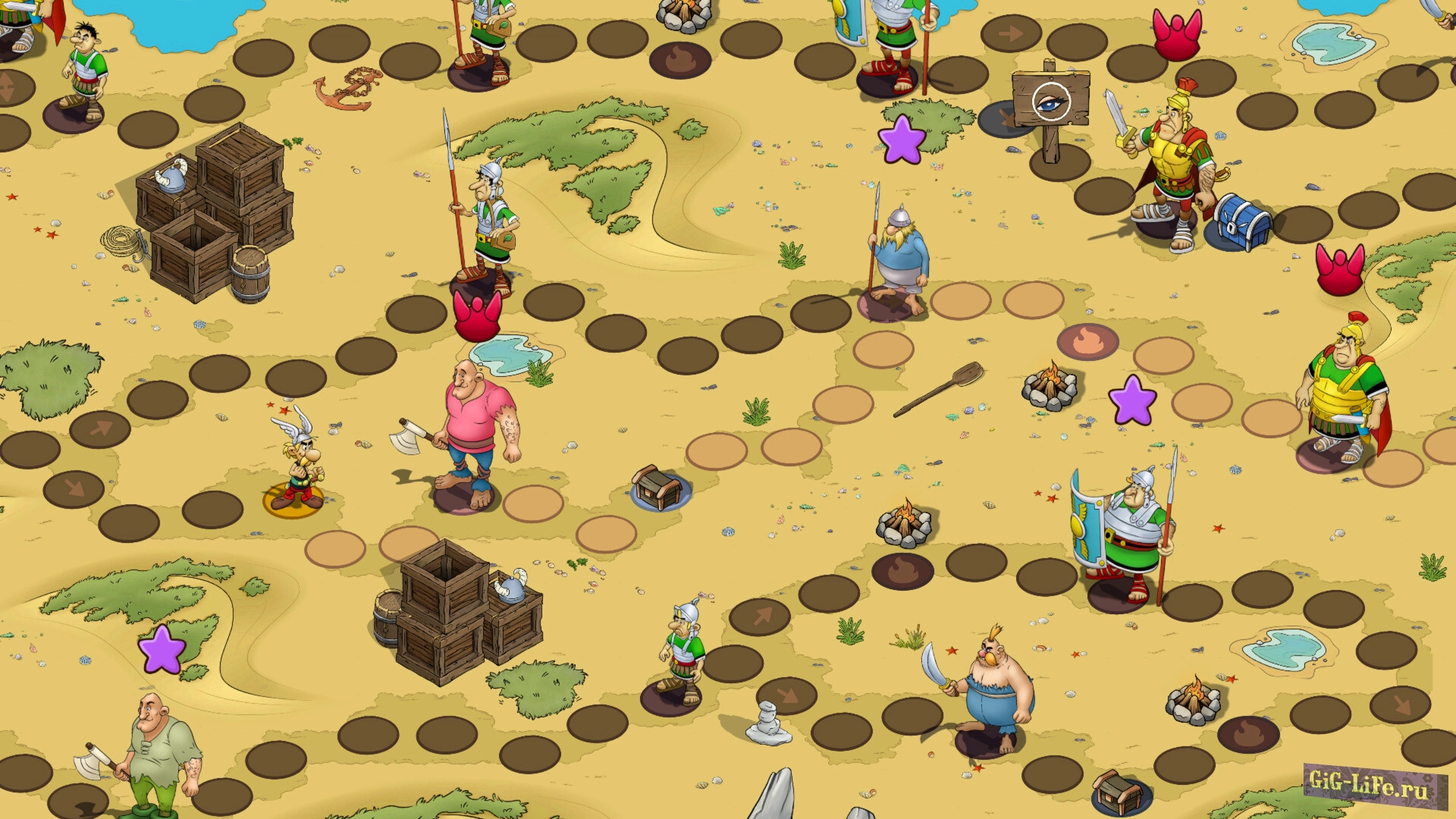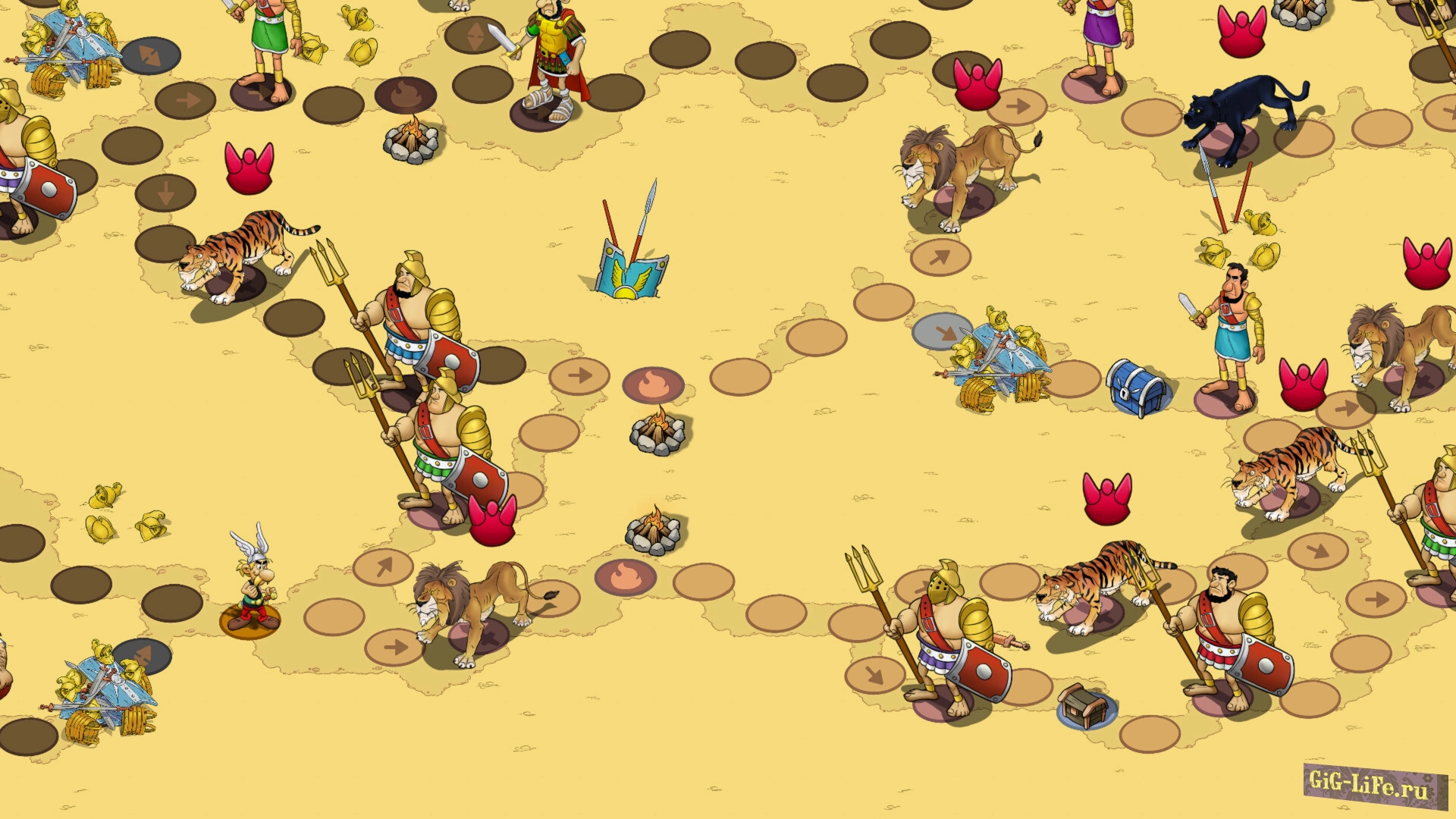 Чтобы помешать его планам, Астерикс, Обеликс и их друзья должны добраться до сокровища первыми. Но будьте осторожны: перед вами лежит смертельно опасный путь. В каждой главе вам придется выбирать маршруты и битвы, находить сокровища и преодолевать многочисленные препятствия. Используйте карты с умом, чтобы не попасть в ловушки римлян. Отправляйтесь в путешествие по шести землям, которые хорошо знакомы всем поклонникам серии, сражайтесь с римскими легионами, а также с пиратами, египтянами, викингами и даже дикими животными!