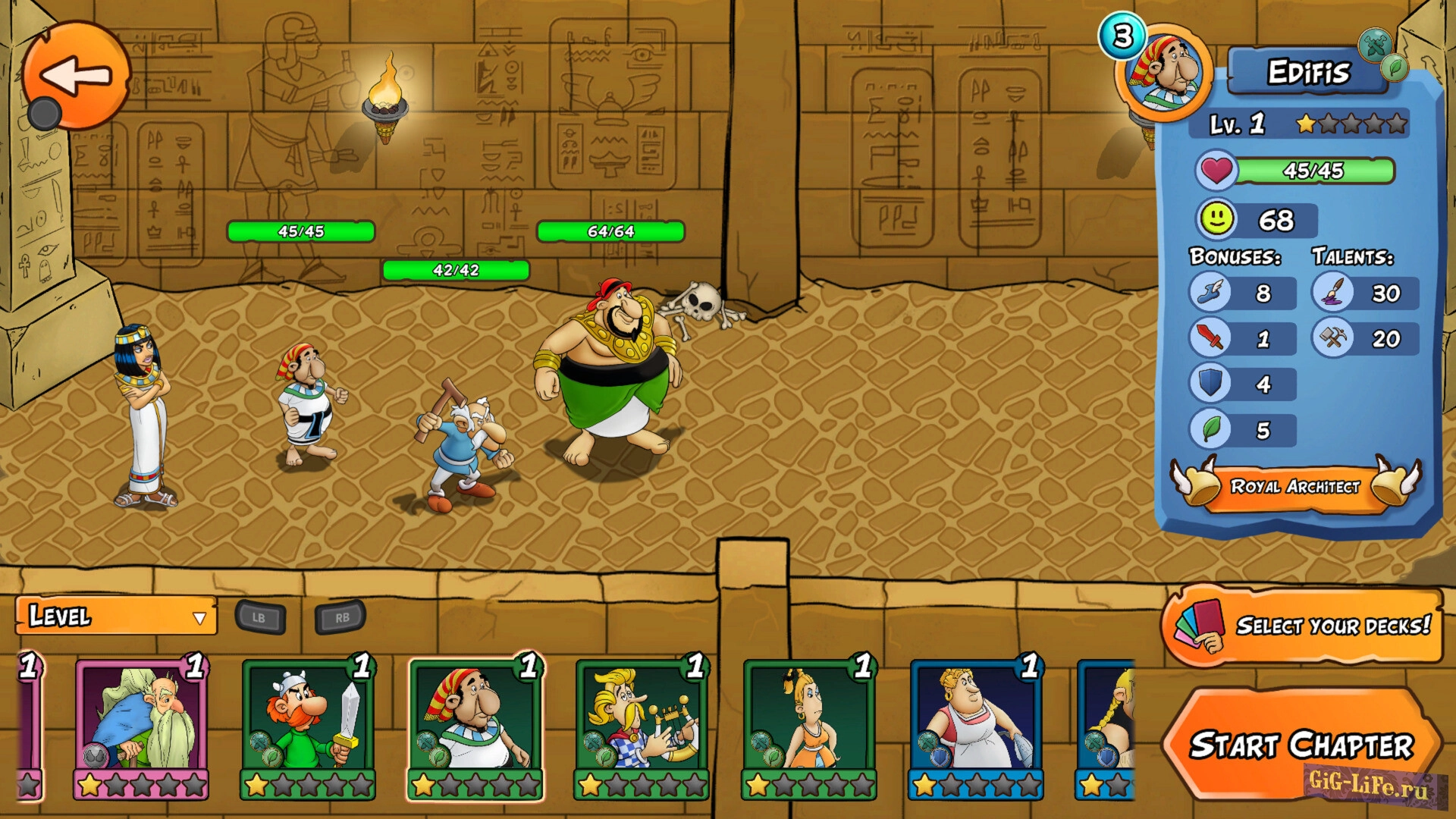 Откройте до 24 героев, путешествуя по разным землям. У каждого персонажа есть свои особенности и высшее умение. Например, навык Астерикса «Прирожденный бунтарь» идеально работает против римлян, делая их атаки менее точными, а Идефикс использует навык «Метка», который отпугивает противников и оглушает зверей! Выбирайте героя в зависимости от того, с кем вам приходится сражаться.