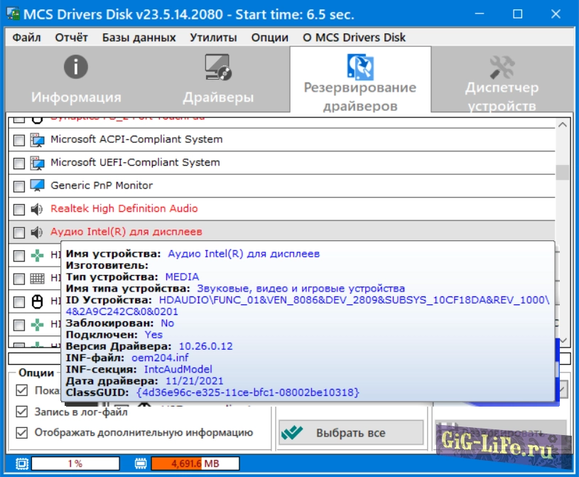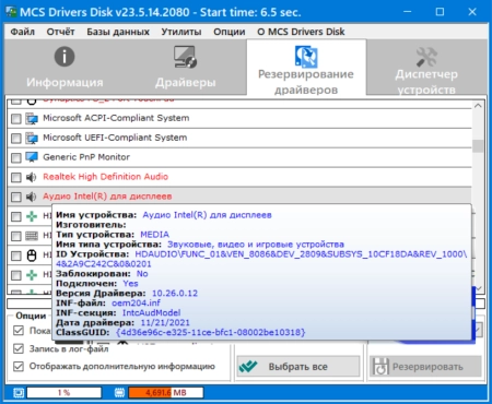 [-] - Восстановлена работоспособность подпрограммы резервирования драйверов(было нарушено форматирование списка устройств)