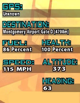 - Показывает пункт назначение и сколько миль осталось лететь до цели (Показывается только во время рейсов)