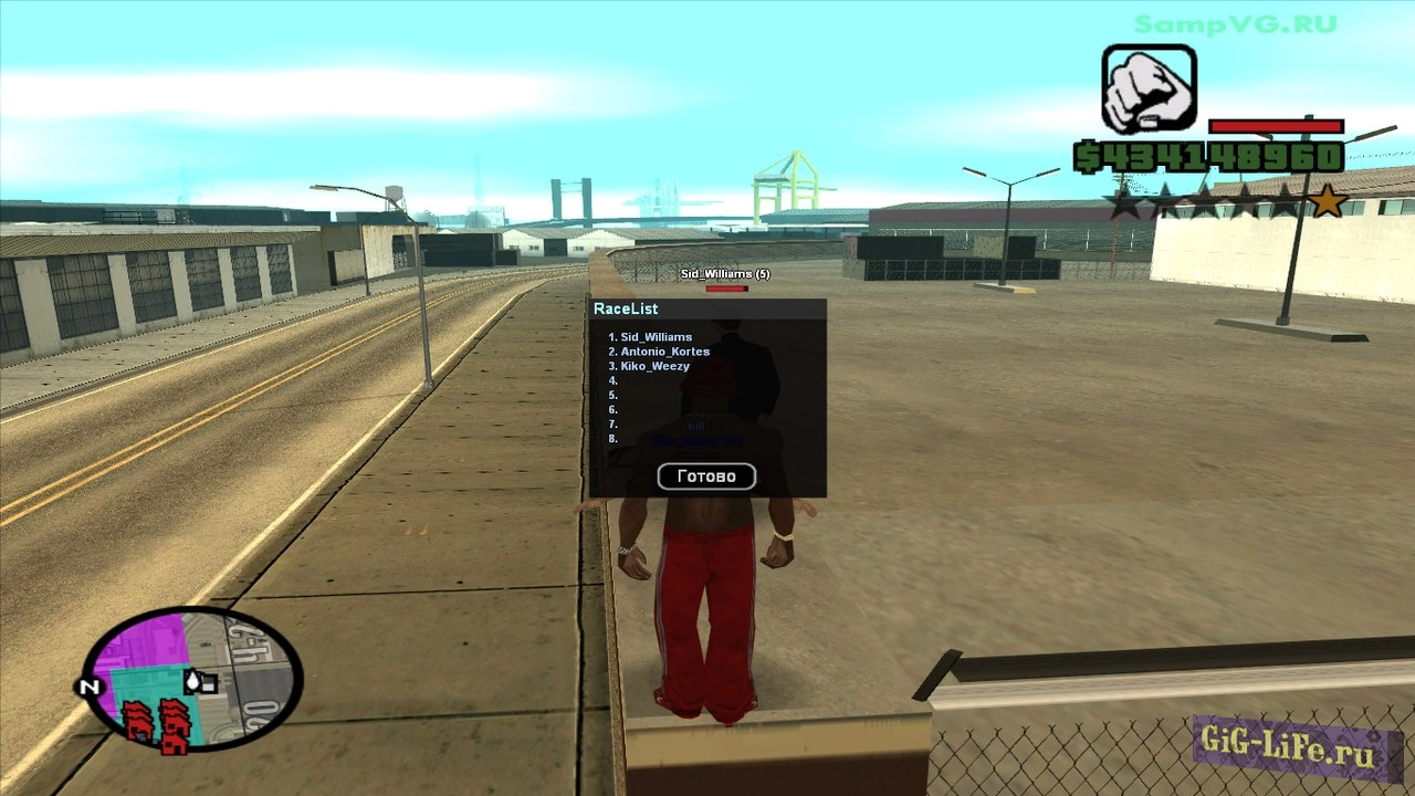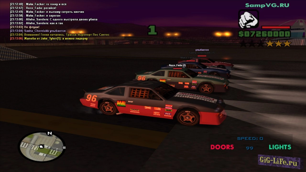 - Гонки (админ сам выбирает тачки, так же есть водные гонки)
