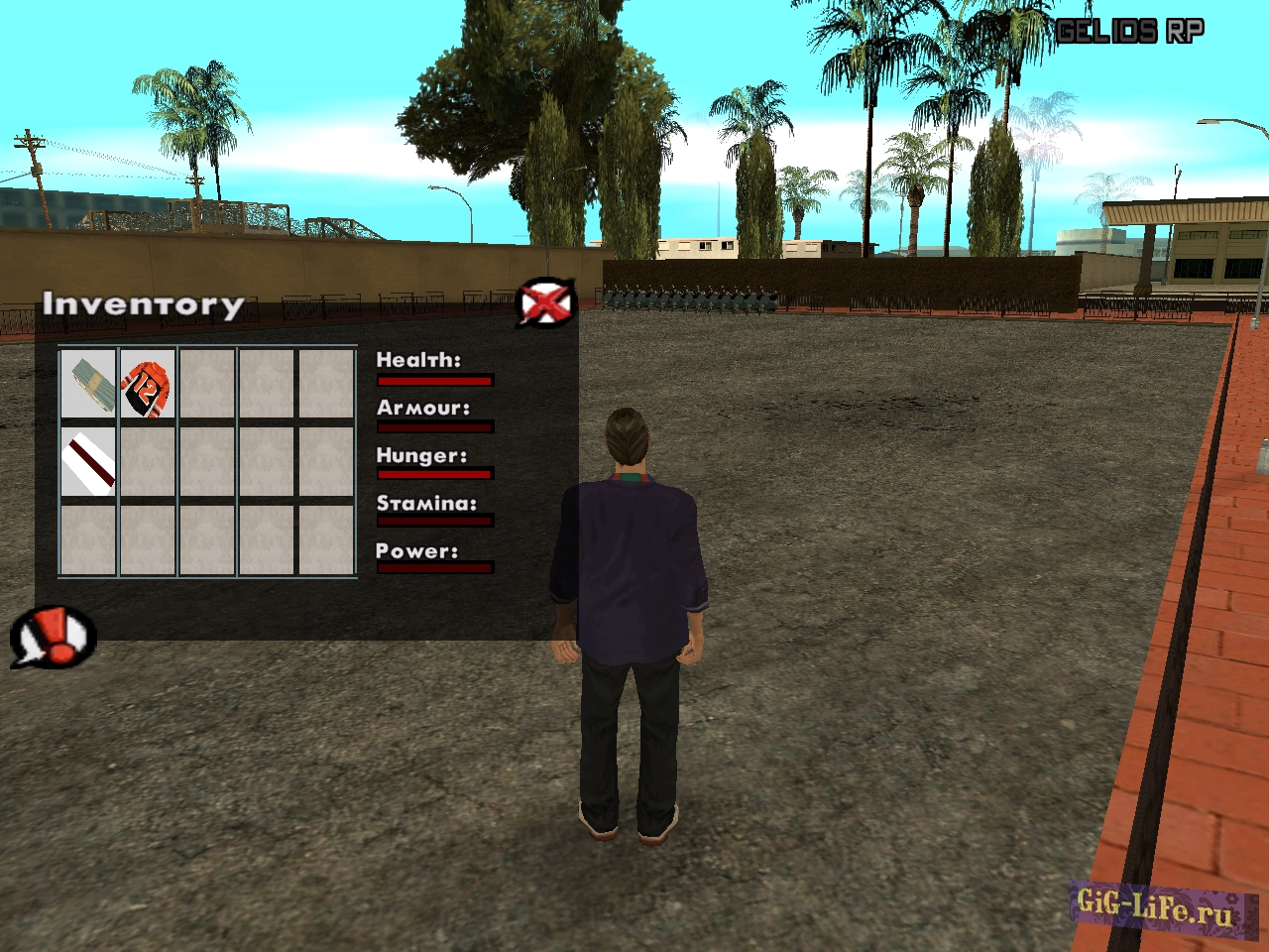 - Инвентарь представлен в виде TextDraw, что обеспечивает удобство использования.
