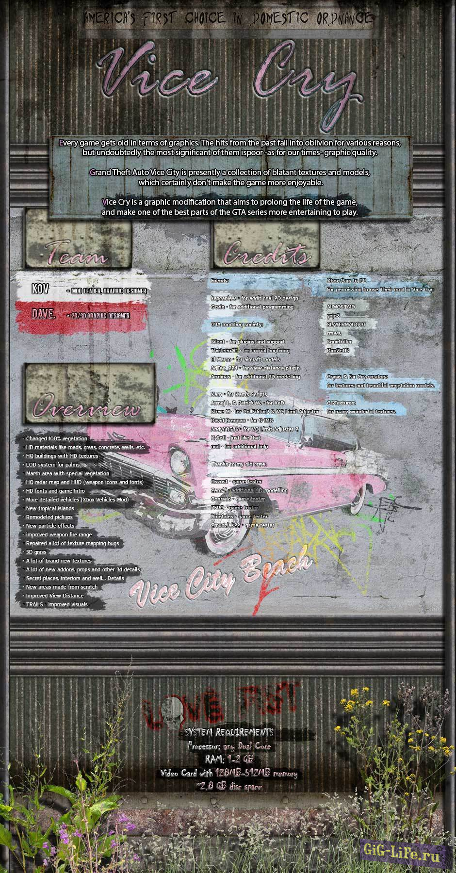 В новой версии Vice Cry вас ждут множество улучшенных текстур, переделанные модели.