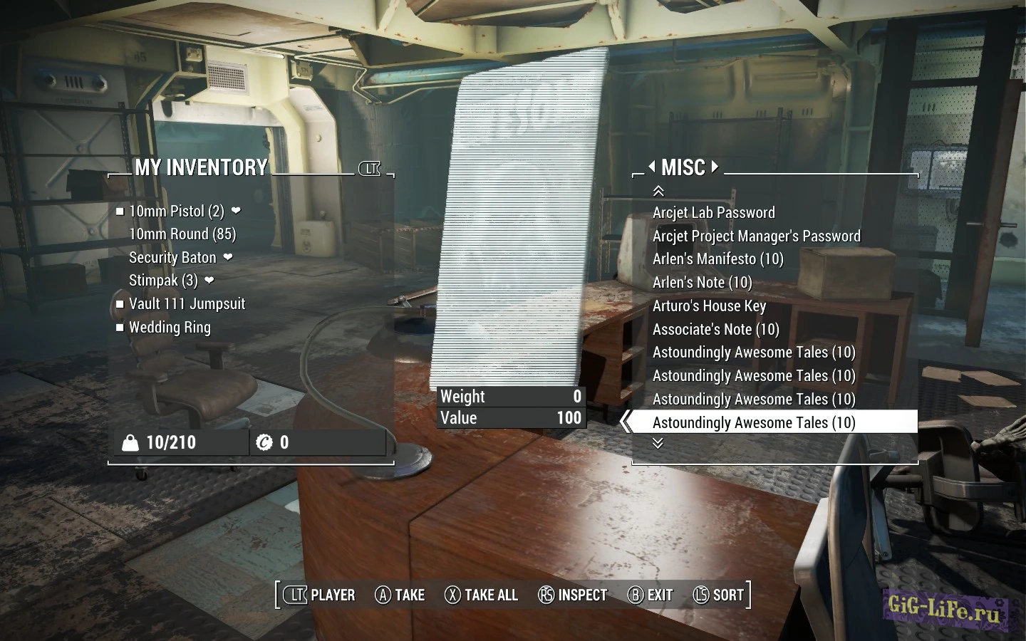 - Взяв вещь она остается в инвентаре с отрицательный значением (баг), в игре чисел со знаком нет и патронов к примеру станет за 50к и их тоже можно взять.