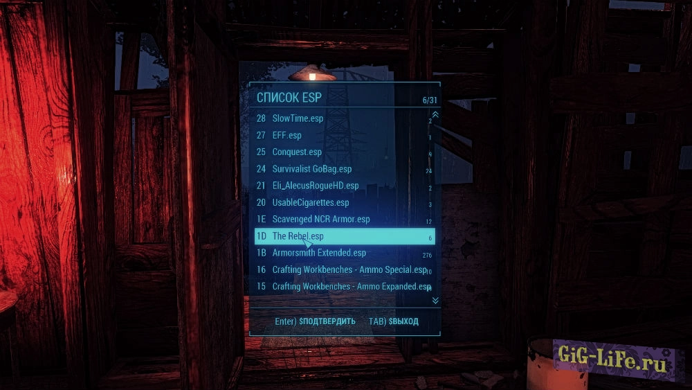 - После открытия меню, вы увидите список всех установленных файлов esp-esm-esl от каждого мода.