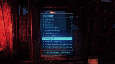 - Если у вас после обновления клавиша F11 не изменилась на F10, то удалите файл ESPExplorer.ini по пути Мои документы \ My Games \ Fallout4 \ F4SE \ ESPExplorer.ini и снова запустите игру с обновленным модом.