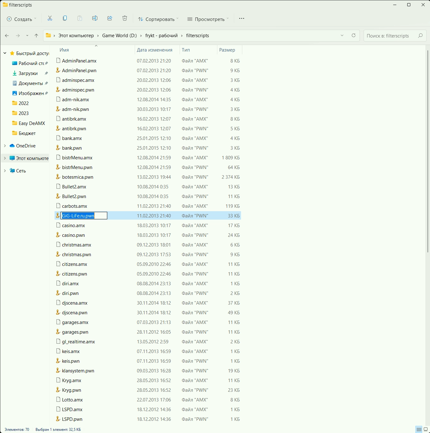 После этого вам потребуется название .amx файла этого filterscript'a. Щелкните правой кнопкой мыши на файле, выделите название без .amx и выберите опцию "копировать".
