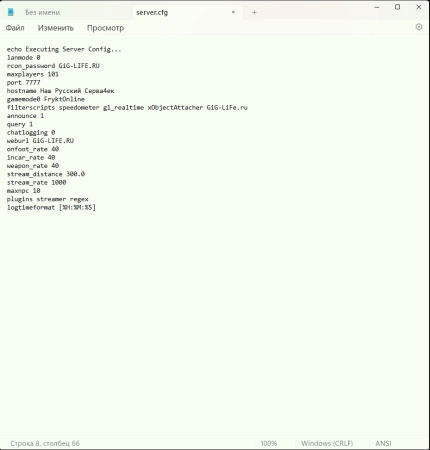 Затем откройте файл server.cfg в корневой папке вашего сервера с помощью текстового редактора, например, Блокнота.