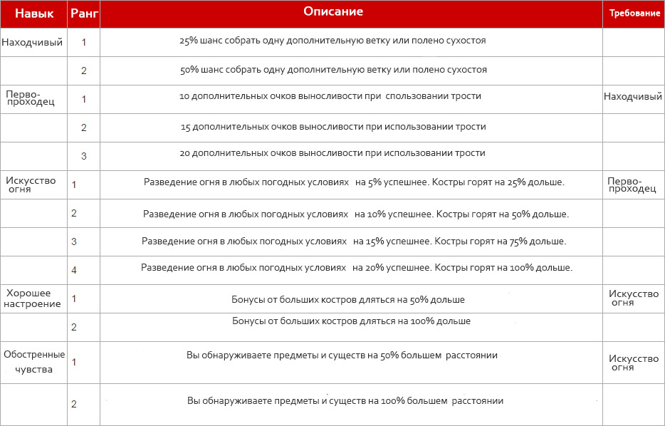 У костра есть система навыков - это новая автономная система, которая доступна из любого созданного вами костра. Поскольку навыки автономны, то не будут конфликтовать с модами на изменение навыков.