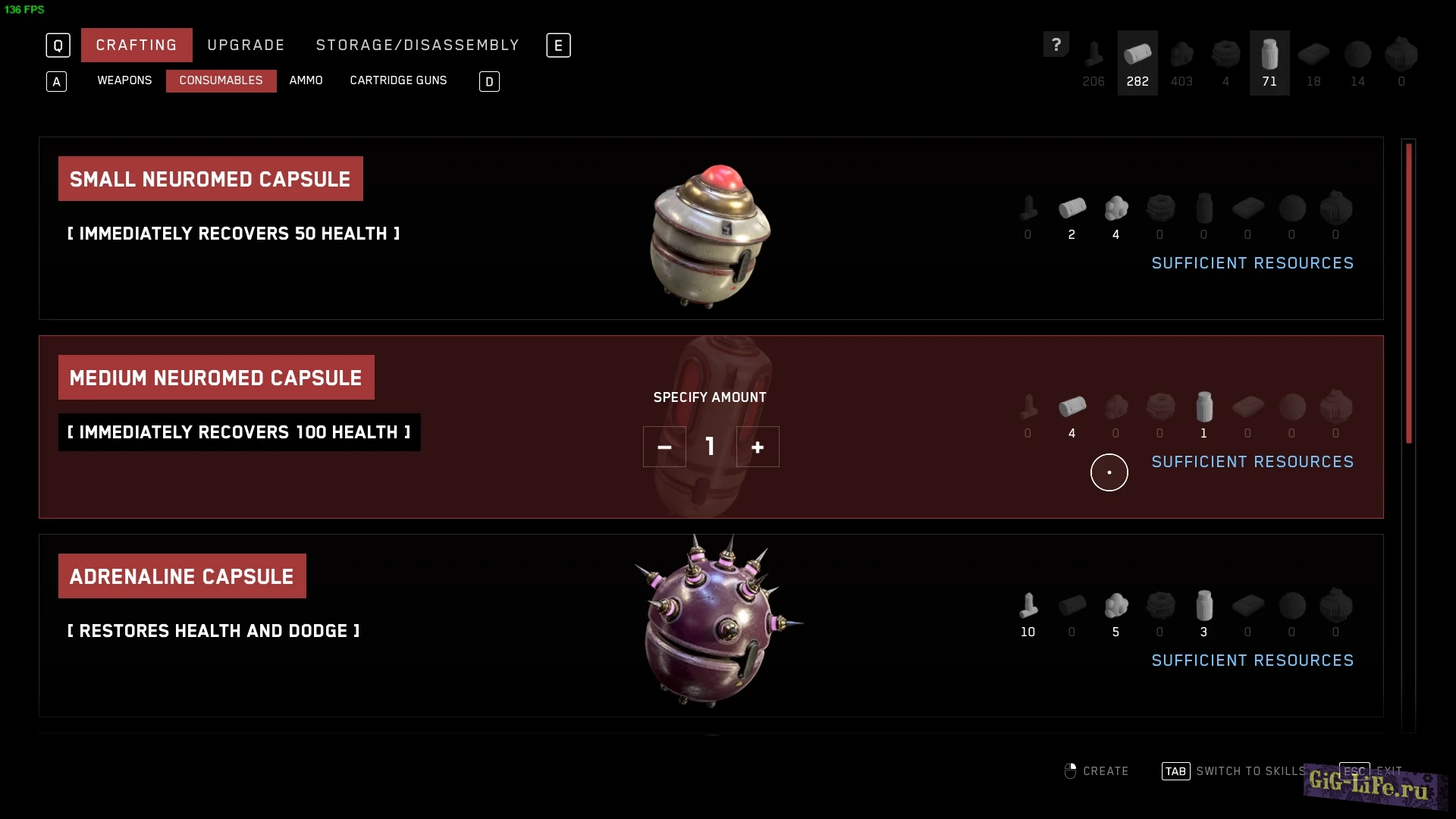 Все ресурсы, включая боеприпасы и расходные материалы, необходимые для создания или улучшения оружия, будут заменены всего на 1 единицу с помощью этого мода.