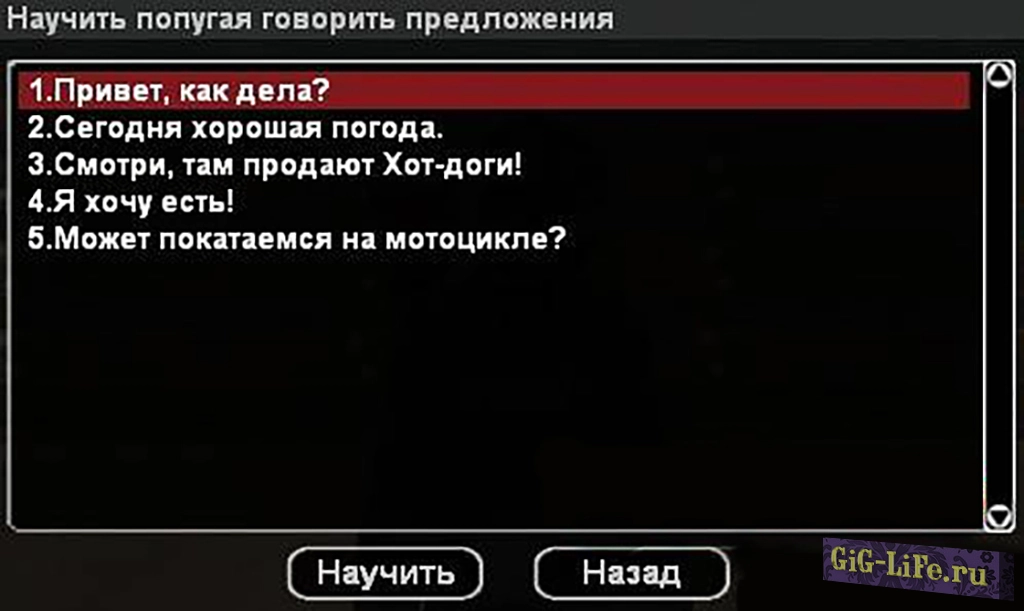 Всего в его словаре пять предложений, и выбор ответа происходит случайным образом. И самое интересное - вы можете лично написать эти предложения для попугая, прямо в игре! Единственное, что вам нужно сделать, это приобрести попугая за 5000$. Однако, имейте в виду, что если вы умрете, ваш верный пернатый друг тоже исчезнет.