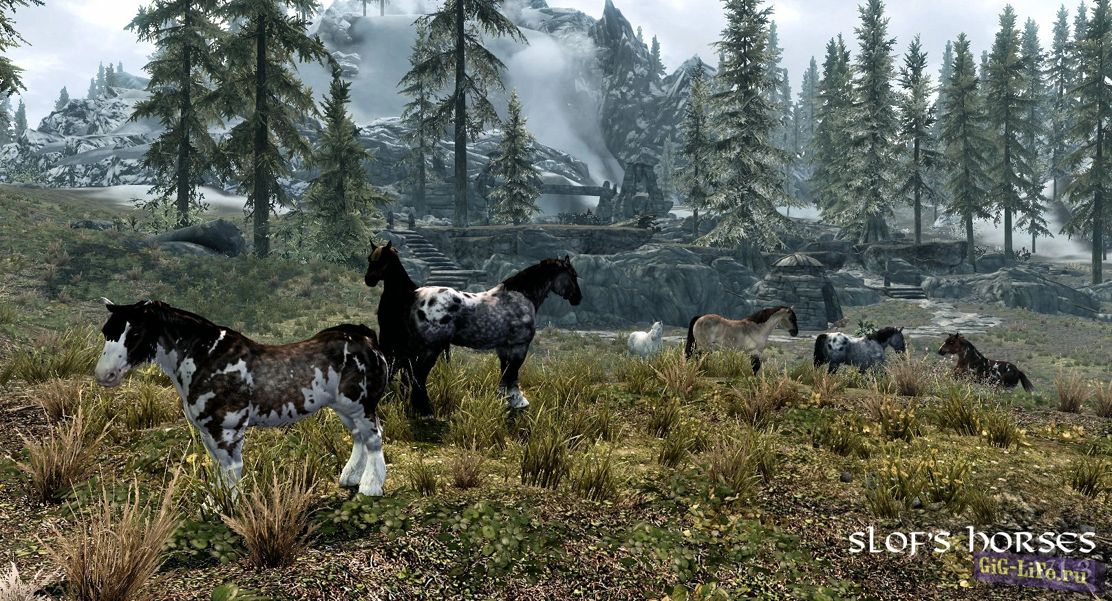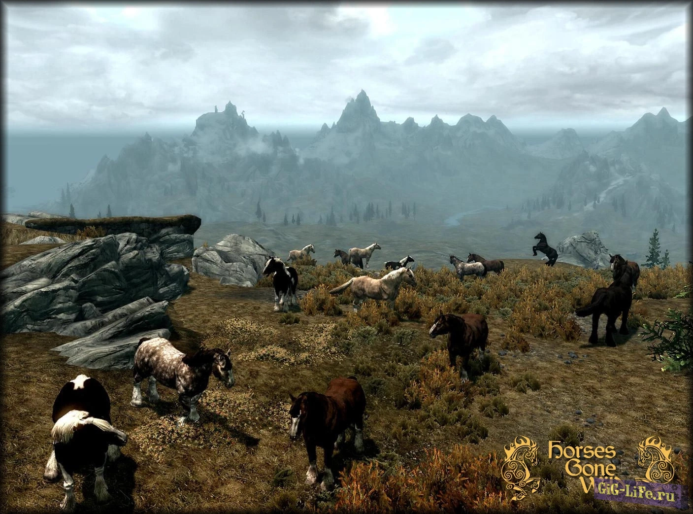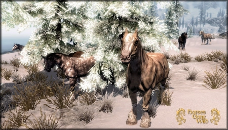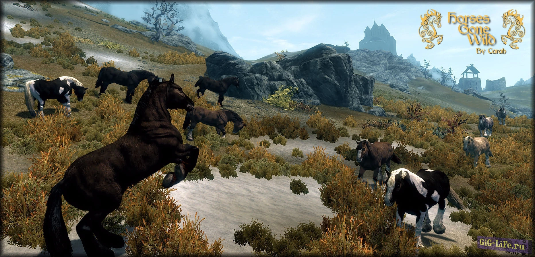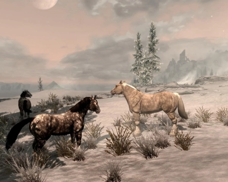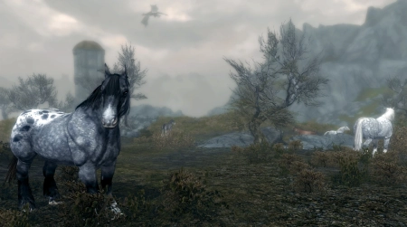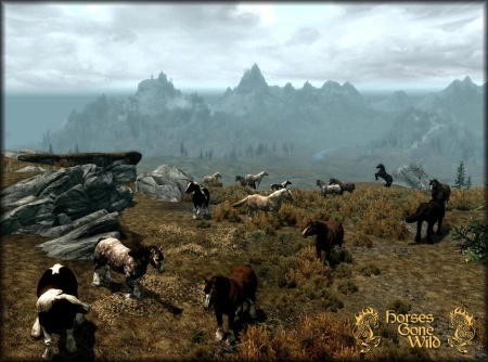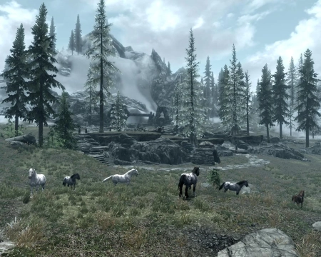 Великолепное дополнение к игре Skyrim - это обновление, которое приносит в мир игры диких коней в качестве новых скакунов! Теперь лошади встречаются повсюду по карте, разбросанными в различных уголках мира (подробности можно увидеть на прилагаемом скриншоте).