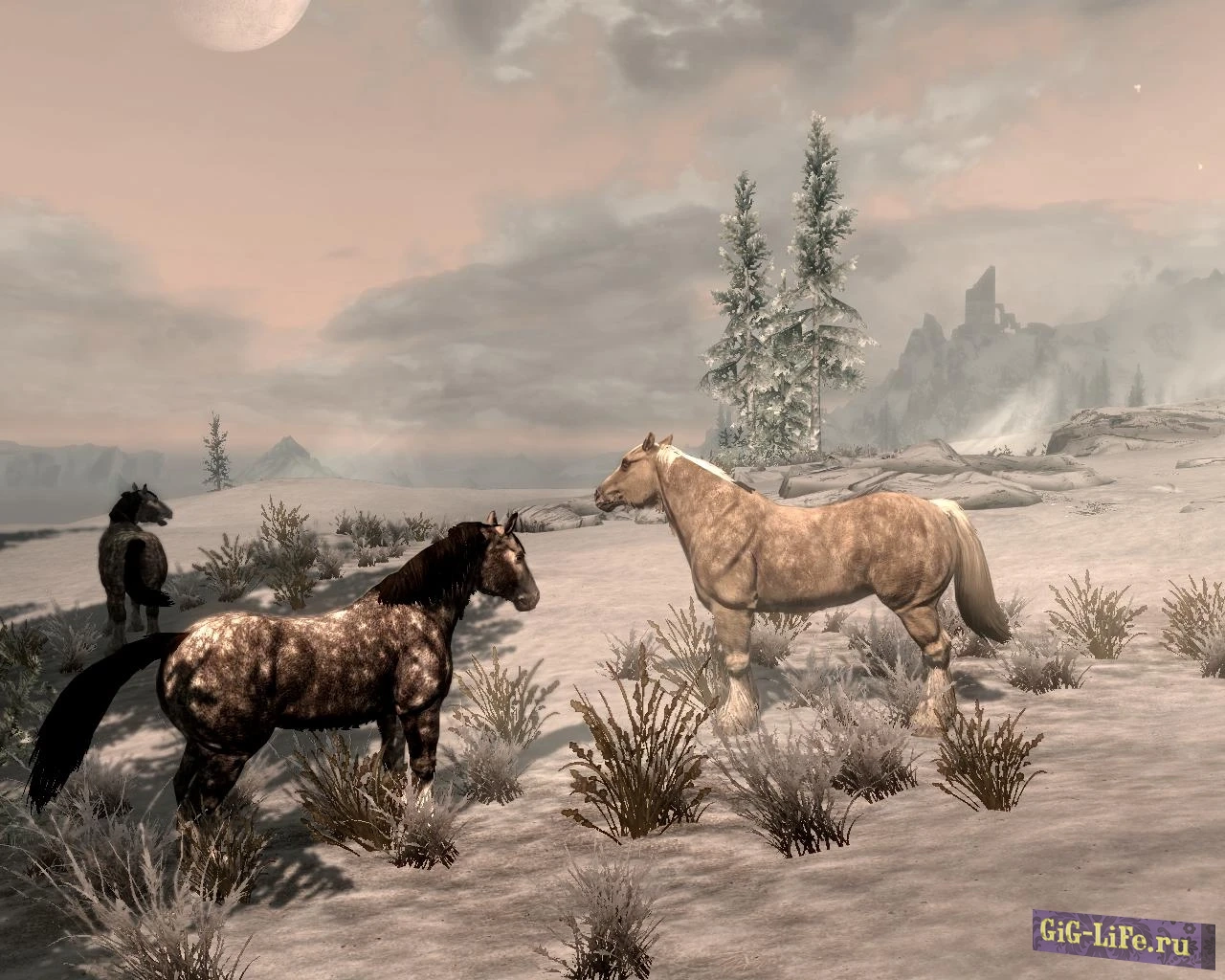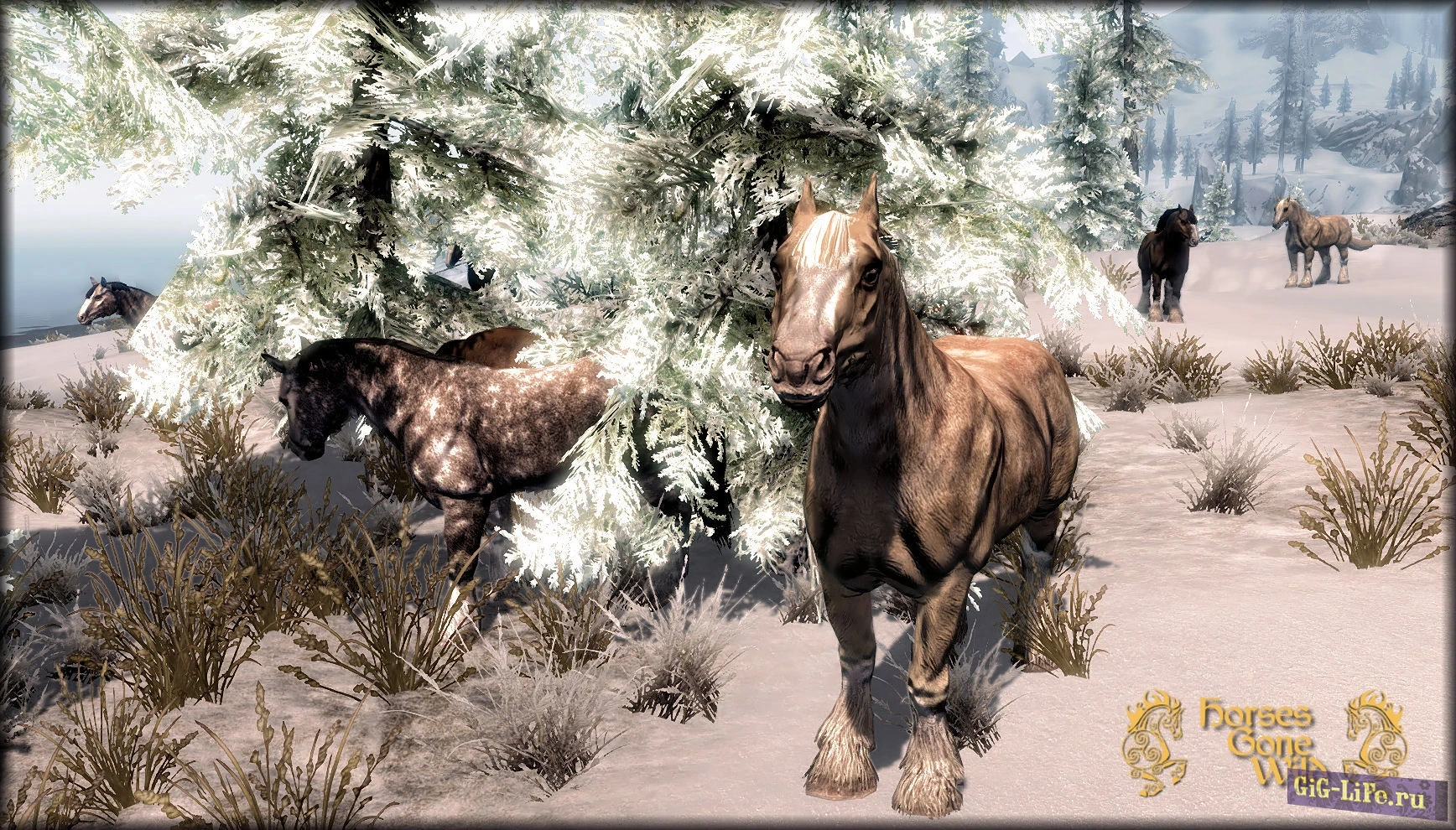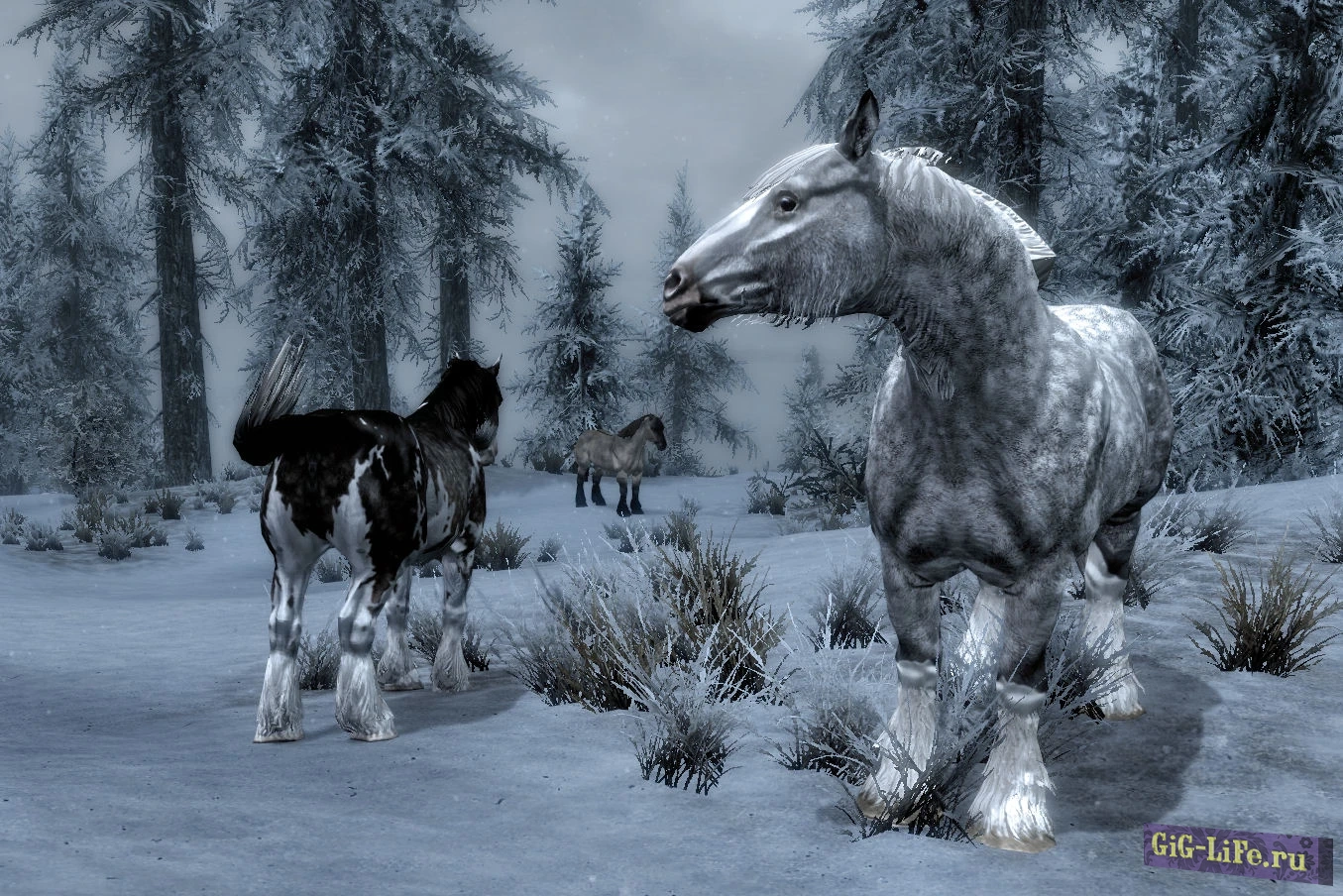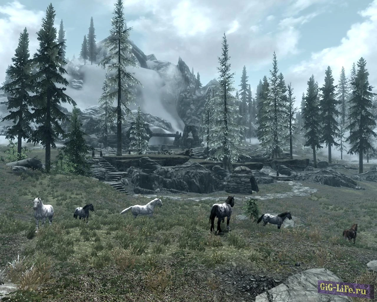 Великолепное дополнение к игре Skyrim - это обновление, которое приносит в мир игры диких коней в качестве новых скакунов! Теперь лошади встречаются повсюду по карте, разбросанными в различных уголках мира (подробности можно увидеть на прилагаемом скриншоте).