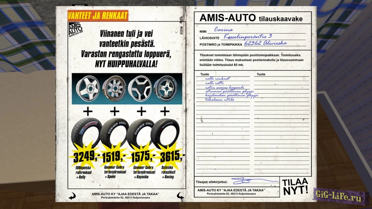 Рядом с поселком есть магазин, где можно приобрести дополнительные детали, которые не удалось найти у себя, а также модернизировать уже имеющиеся части вашего автомобиля. Для заработка денег вы можете помогать соседям. Например, одному из них нужны дрова, и вы можете использовать свой транспорт, помимо груды хлама, чтобы доставить им дрова и получить оплату. Также алкашу из села требуется постоянный поставщик финского домашнего сладкого вина. Вы можете научиться его производить и зарабатывать на этом.