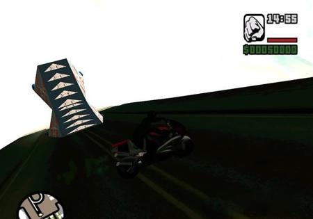 Чтобы попасть на длинную дорогу ведущую в небеса, нужно посетить третий аэропорт. Эта дорога включает в себя два трамплина: первый - небольшой, предназначенный для разгона, второй - высокий, созданный для прыжков. Кроме того, на самом верху дороги есть парковка, где стоят различные автомобили и мотоциклы. Все это делает игровой процесс более захватывающим и увлекательным.