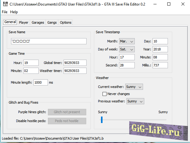 Данная программа предназначена для индивидуального редактирования каждого сохранения в GTA 3.
