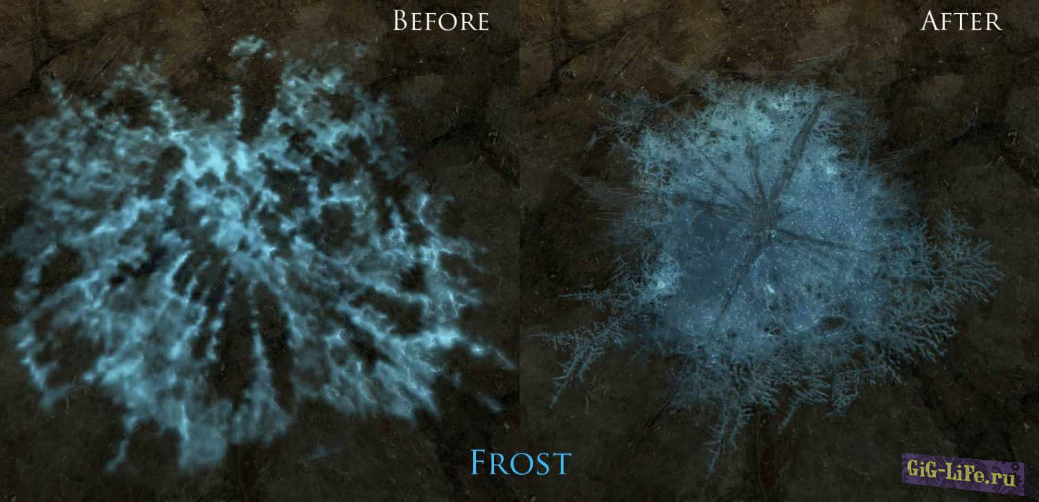 Данная модификация изменяет стандартные текстуры огня, молний и мороза, на уникальные текстуры. Так теперь заклинания воздействующие с магией задействуют обновлённые, более реалистичные и качественные текстуры.