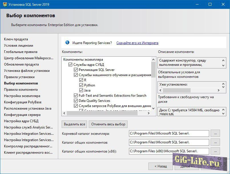 - Жесткий диск Для SQL Server требуется как минимум 6 ГБ свободного места на диске.