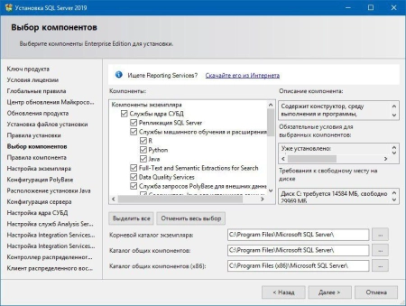 - Требования к месту на диске определяются набором устанавливаемых компонентов SQL Server .