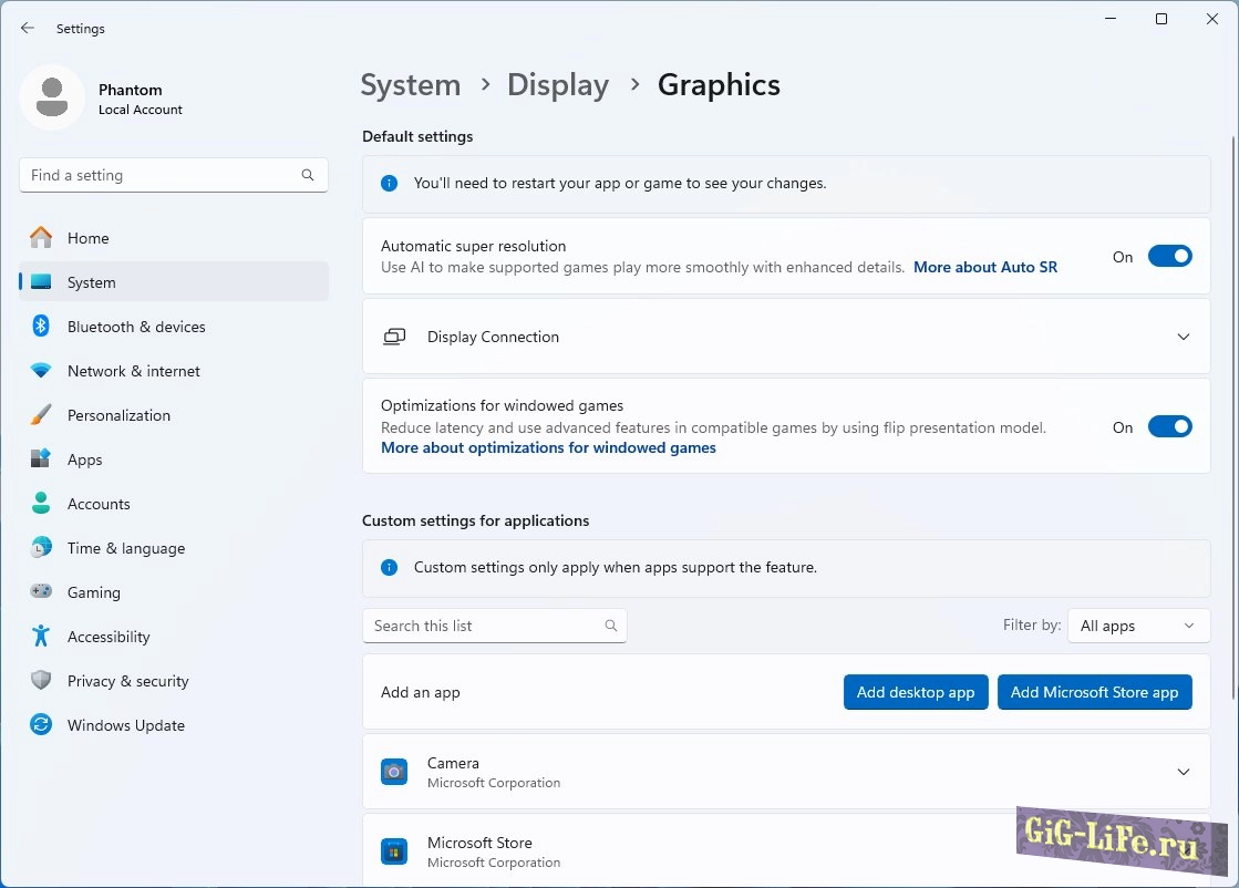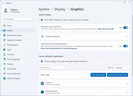 Настройки для этой функции будут доступны в разделе Система - Дисплей - Параметры графики, где пользователи смогут включить "автоматическое увеличение разрешения" или настроить эти параметры для каждого приложения. Предполагается, что эта функция будет использовать NPU / AI-ядра, включая тензорные ядра GPU.