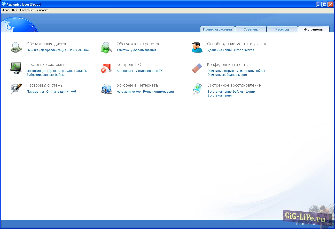 - Aбсолютно новый интерфейс BoostSpeed 5 позволяет легко управлять программой. Все утилиты и функции быстро доступны. Основные задачи - очистка дисков, исправление ошибок в реестре, а также дефрагментация файлов могут быть выполнены с помощью всего нескольких кликов мышки! Программа отображает текущее состояние компьютера и, в случае необходимости, предлагает выполнить проверку системы.