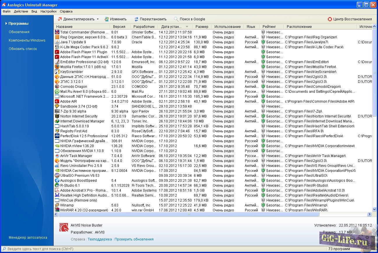 - Uninstall Manager позволяет легко удалять любую из установленных на Вашем компьютере программ. Для этого доступны 3 опции: "Деинсталлировать" - стандартное удаление программы с помощью мастера удаления; "Моментальное удаление" - удаляет программу мгновенно без запуска мастера удаления; "Удалить из реестра" - удаляет записи программы из реестра, если эта программа раннее была удалена некорректно.