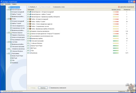 - Когда вы работаете в Интернете, открываете документы или запускаете приложения, следы Вашей деятельности сохраняются в определенных файлах, таких как cookies, временные файлы Интернета и в реестре. Это означает, что люди, которые имеют доступ к Вашему компьютеру, могут легко увидеть, какие сайты Вы посещали и какие документы, файлы и приложения Вы недавно открывали. Track Eraser позаботится о безопасности Ваших личных данных, удалив эти файлы.