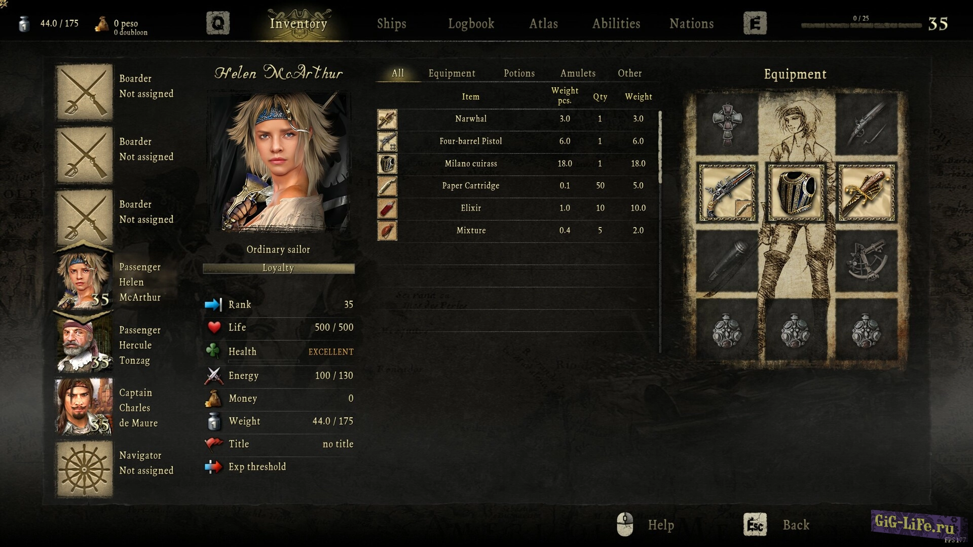 - Снарядите себя и своих сопартийцев. От ножей, шпаг и пистолетов, до тяжелой брони, топоров и мушкетов.
