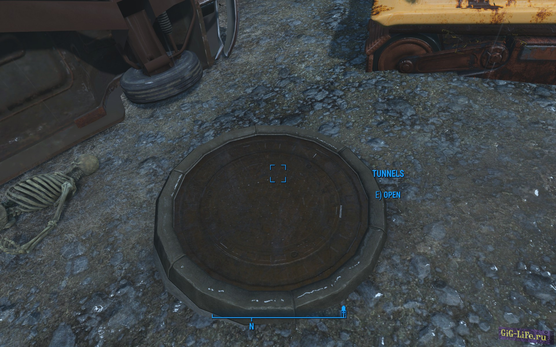 Найти вход вы можете рядом с убежищем 111, крышка люка под землёй, на скриншоте смотрите точное месторасположение, а так, находится между автомобилем и строительным транспортным средством. Обратно выйти можно по лестнице расположенной непосредственно в подземной комнате.