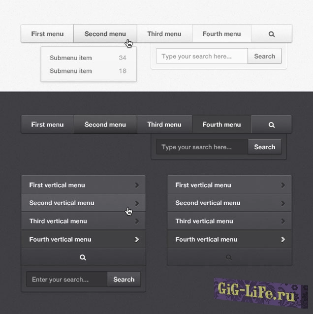 Разработан дизайн с выпадающим списком, полем для поиска и логотипом компании в формате PSD.