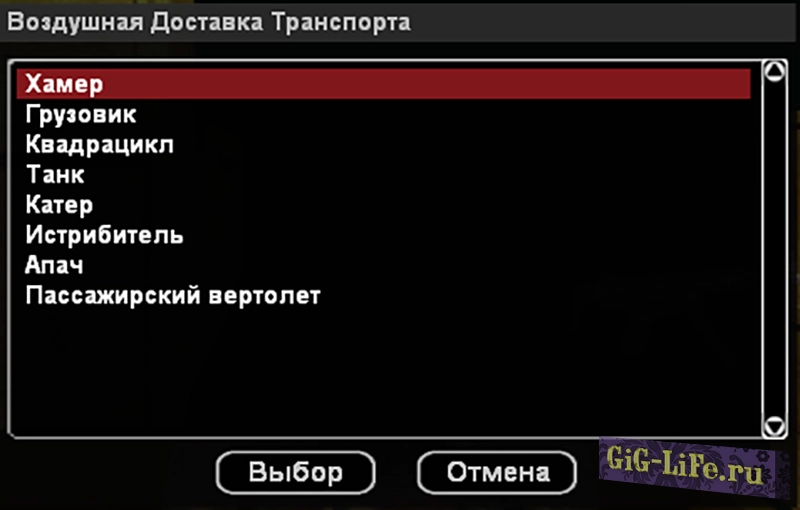 - Вы вводите команду /dosgun, выбираете нужное оружие и ожидаете 30 секунд. Вниз спускается ящик, в котором появляется пикап с выбранным оружием.