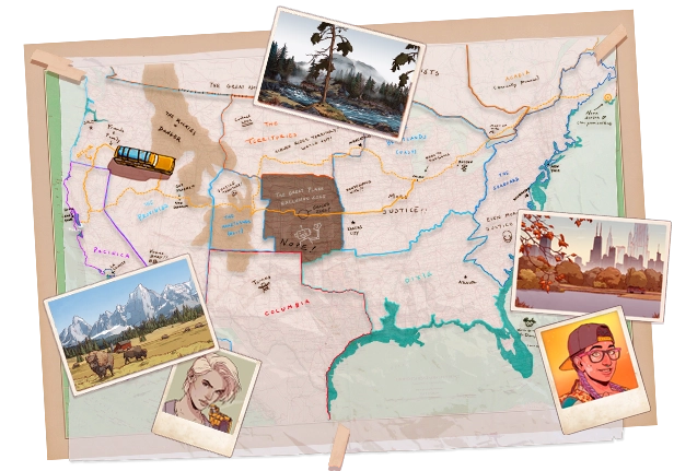 В этом путешествии по альтернативной Америке вы будете останавливаться в интересных местах, выполнять неожиданные задания, знакомиться с необычными персонажами, набирать новых членов команды и, возможно, даже сражаться с преследователями.