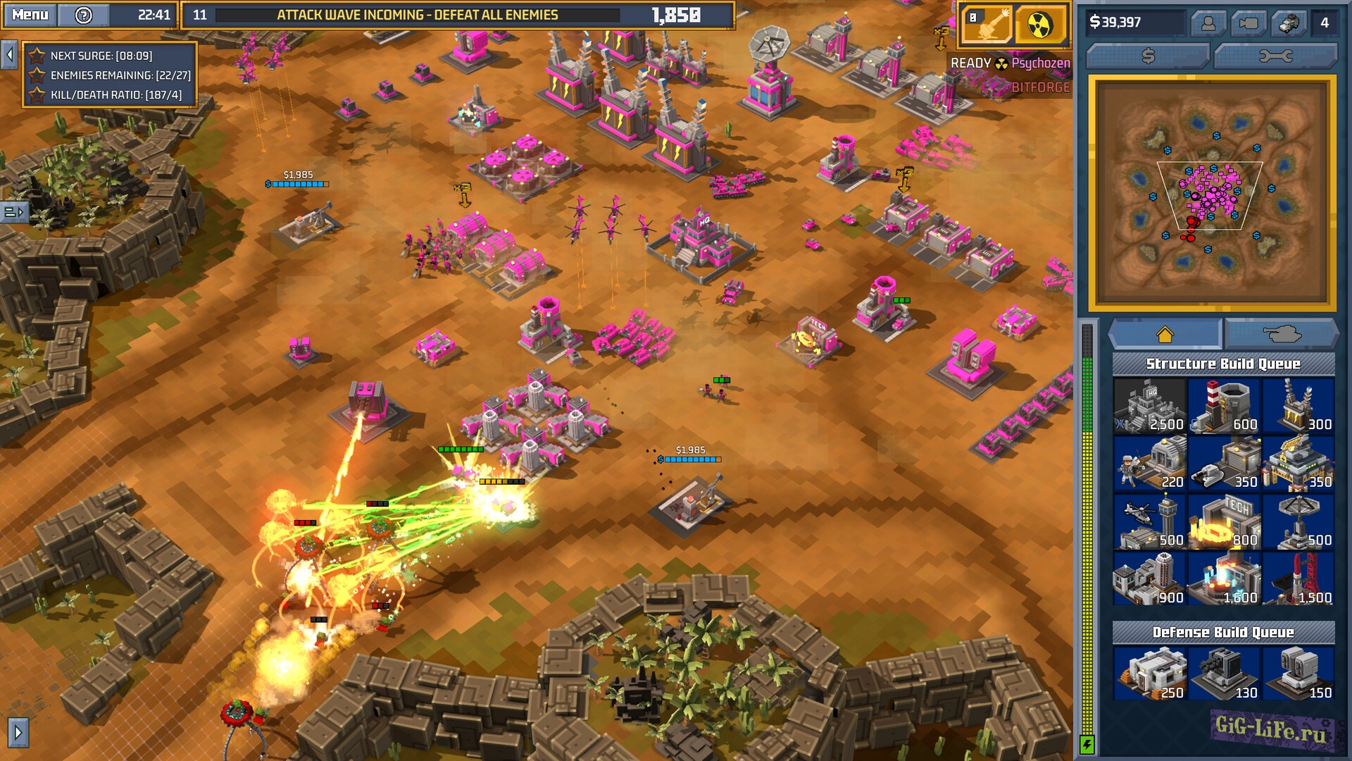 - Если вам захочется большего, присоединяйтесь к другим игрокам онлайн. Вы можете играть вместе в совместных кампаниях или против друг друга в стычках, поддерживая до 8 игроков. Затем загружайте новые карты, моды и многое другое с полной интеграцией Steam Workshop, чтобы открыть для себя новые способы преобразования всего в пиксели и байты. А также вы можете загружать свои собственные моды и делиться ими с друзьями и врагами.