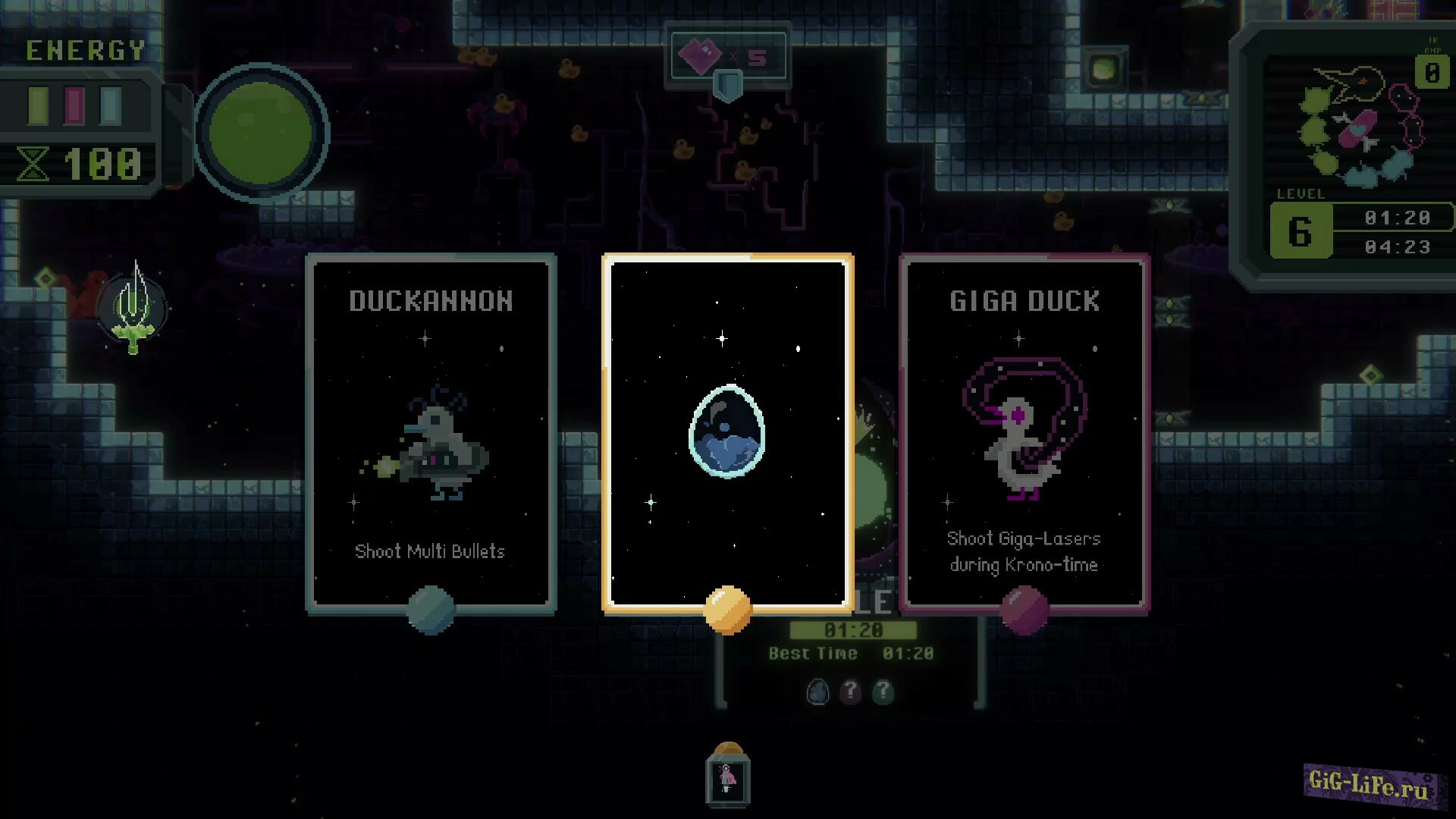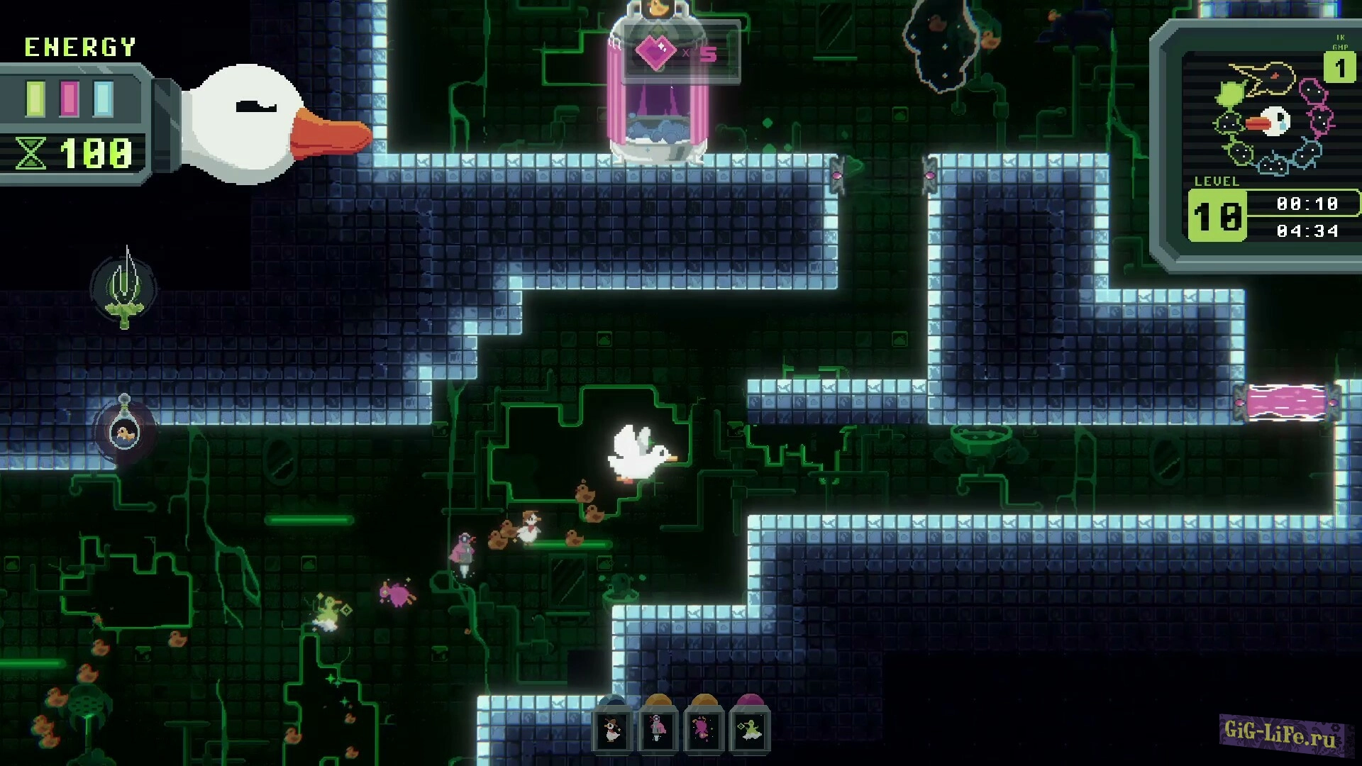 - Замедлите время, чтобы отдохнуть, пока решаете головоломки и преодолеваете баррикады. Создавайте защитные пузыри, чтобы ваша уточка не пострадала от двойников, и размещайте взрывные ловушки. В конце каждого уровня у вас будет возможность выбрать одно из двух случайных улучшений. Экспериментируйте с новыми комбинациями при каждом перезапуске.