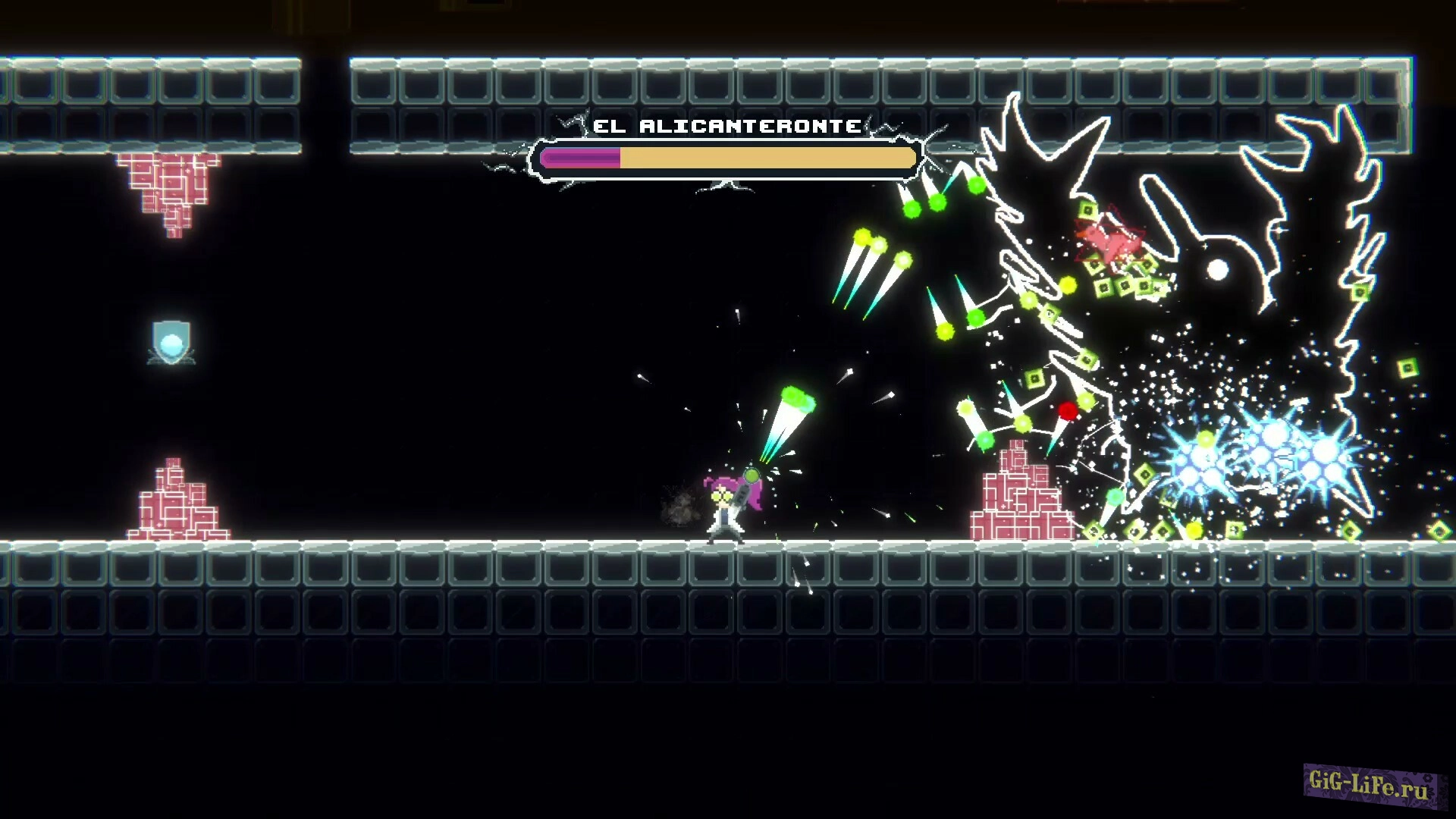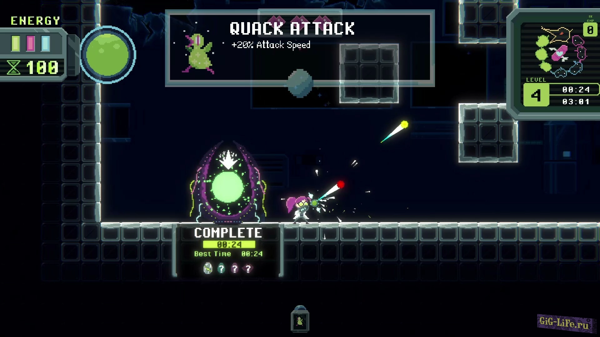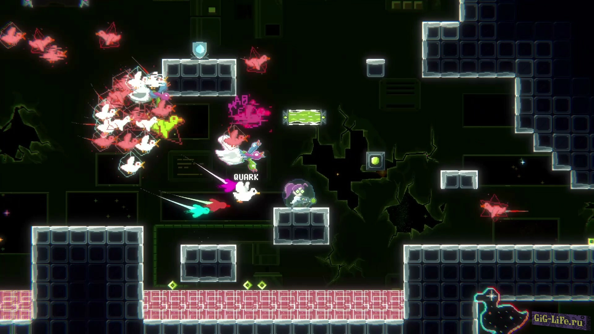 - Игра предлагает множество уникальных возможностей: точный платформинг, стратегическая стрельба, решение головоломок и получение улучшений. Бесконечный режим на выживание проверит вашу выдержку, бросая вызов с помощью изматывающих залпов прыгающих пуль и щелкающих клювом боссов.