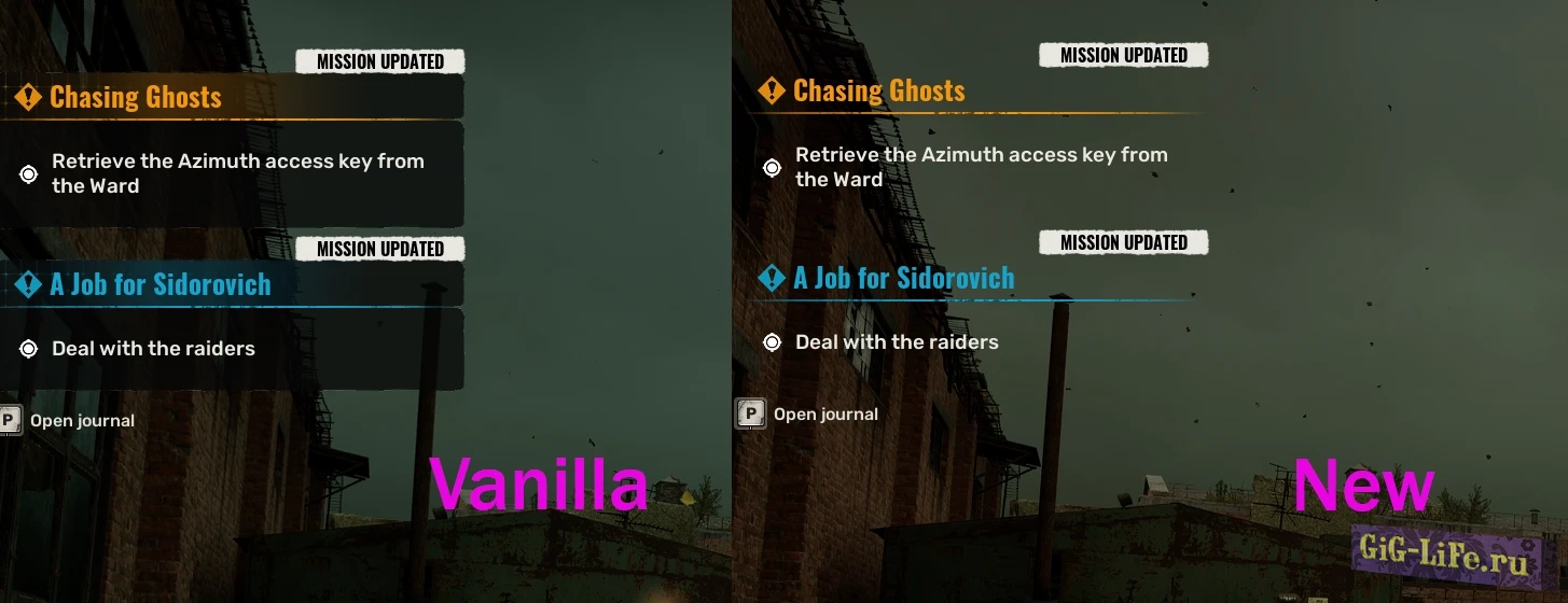 Этот мод удаляет фон с индикаторов здоровья, боеприпасов, быстрого слота, кнопок взаимодействия/добычи и уведомлений о заданиях.