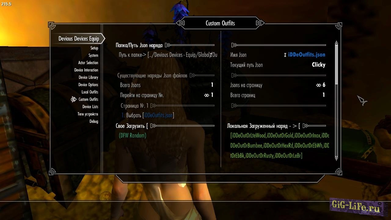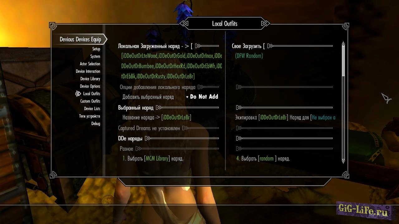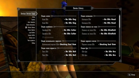 При выборе наряда не забудьте подождать, пока мод снимет с вас текущую одежду и наденет выбранный DD-бондаж.