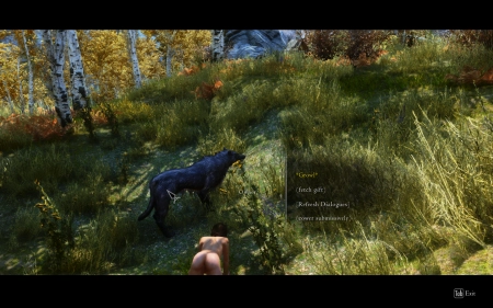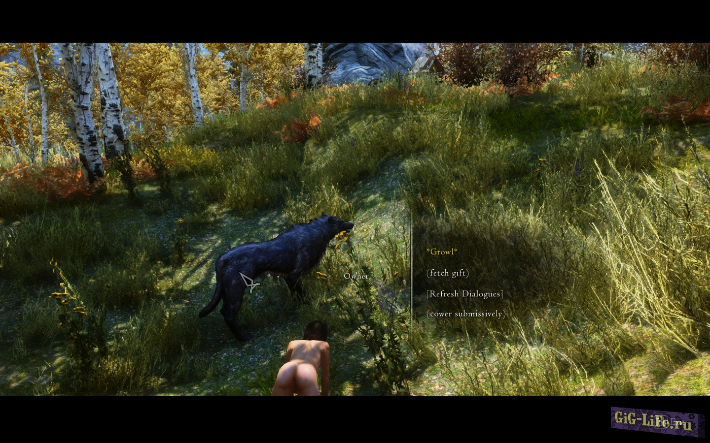 В зависимости от значений, присвоенных NPC с помощью переменных storageUtil, будут отображаться различные ветки диалога: романтика, ГГ в роли доминанта, ГГ в роли сабы, зоофилия и мольбы/подарки.