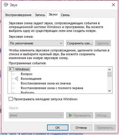 - Проверьте выбранную звуковую схему (не стоит ли она на “Без звука”)